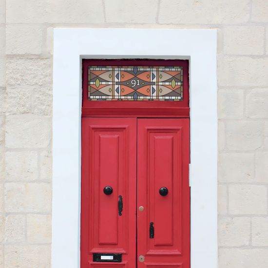 Our Descartes Stained Glass Door Number is available in custom sizes to fit any window shape. It is printed onto high quality materials for a vibrant and lasting finish.