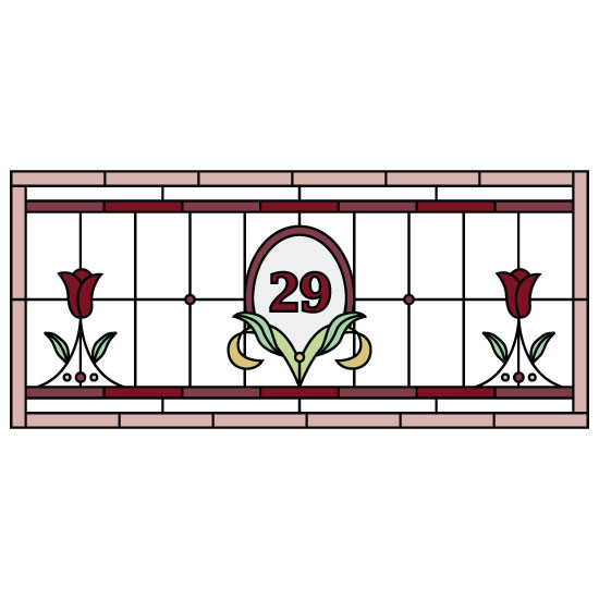 Our Florence Stained Glass Door Number is available in custom sizes to fit any window shape. It is printed onto high quality materials for a vibrant and lasting finish.