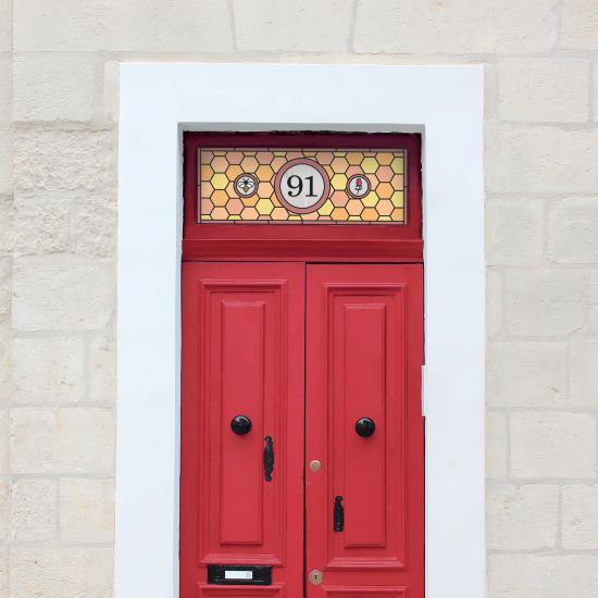 Our Louise Stained Glass Door Number replicates real stained glass with bold lines and shapes.