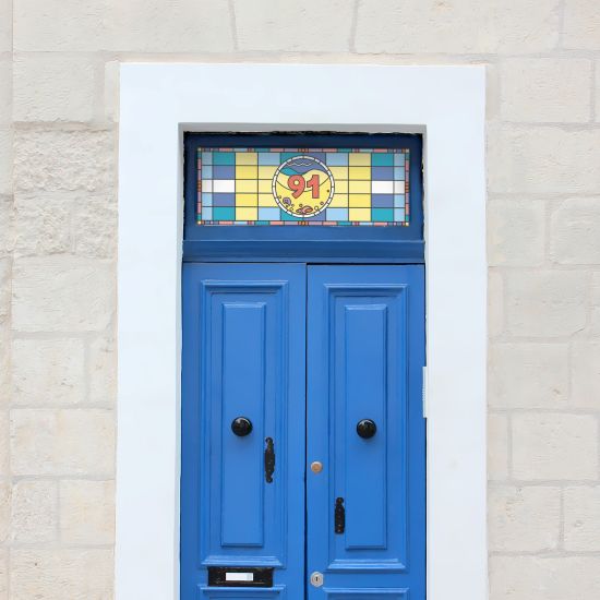 Our Nautilus Stained Glass Door Number is available in custom sizes to fit any window shape. It is printed onto high quality materials for a vibrant and lasting finish.