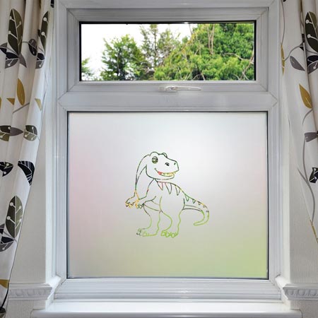 Our Tyrannosaurus Rex Dinosaur Window Film designs are ideal to add some decorative flair with your privacy. This design is available in a selection of colours or in clear with a frosted background.