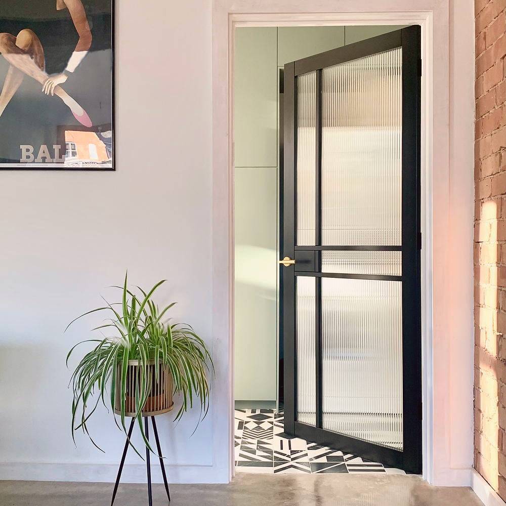 Simulate Victorian ribbed glass with our Reeded Glass film. The ribbed bands are available in both 1/2″ and 1/4" width and the design stripe direction runs vertically down the length of the roll. The band height is determined by the length of the material ordered