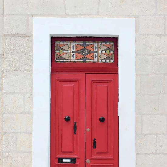 Our Descartes Stained Glass Door Number is a custom design from Lustalux At Home which replicates real stained glass.